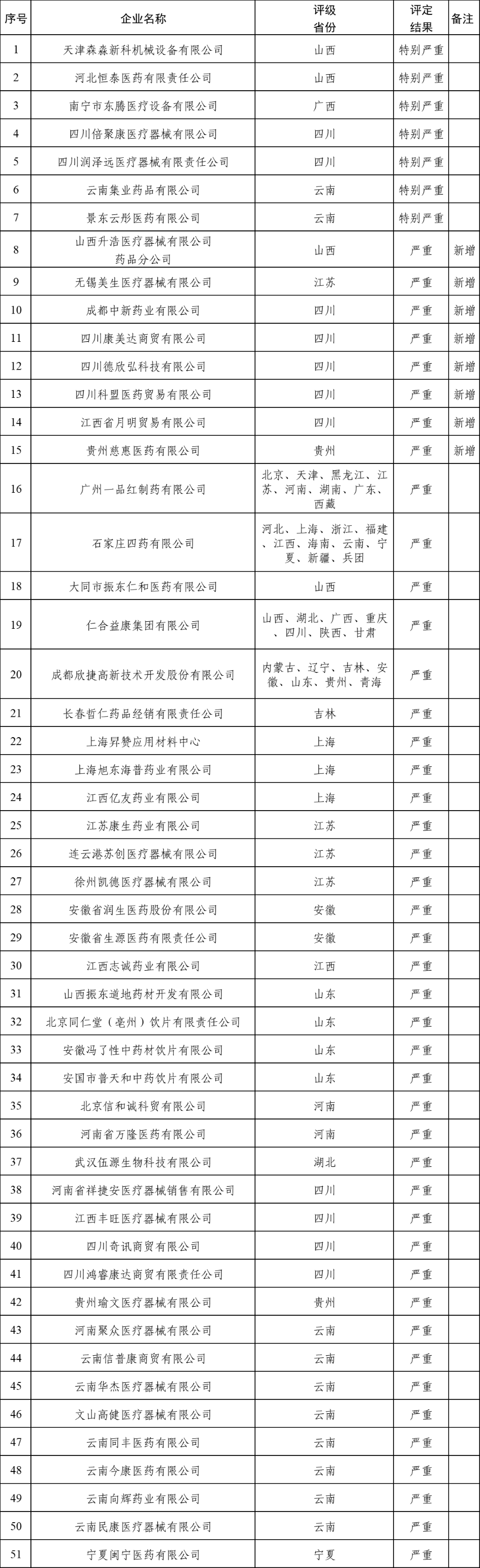 受國家醫(yī)療保障局委托,國家醫(yī)療保障局醫(yī)藥價格和招標采購指導(dǎo)中心匯總了截至2025年3月31日各省份評級為“特別嚴重”和“嚴重”失信的醫(yī)藥企業(yè)情況,現(xiàn)公告如下。